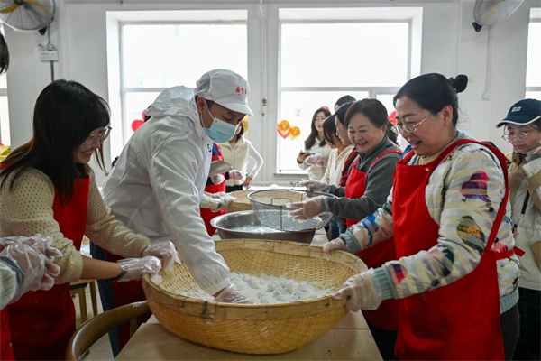 3月3日,校妇委会联合校工会在朝阳校区(东)教工食堂举办“其乐融融摇元宵、同心同德庆佳节”传统文化体验活动。活动特邀中华老字号“鼎丰真”的面点师傅进行现场教学,展示传统元宵摇制的技艺精髓。教职工们亲手将馅料沾水、放入盛满糯米粉的笸箩中反复摇动,体验“摇”出团圆美满的乐趣。活动设置了元宵节文化趣味问答和猜灯谜环节,现场气氛热闹非凡,教职工们积极参与,欢声笑语回荡在活动现场,进一步增添了节日的欢乐氛围。