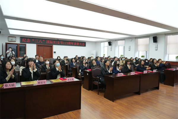 为深入贯彻习近平总书记关于妇女事业、妇联工作的重要指示精神,创新妇女思想引领工作,庆祝第113个“三八”国际妇女节,3月8日,学校在东区办公楼301会议室召开表彰大会,表彰过去两年在学校各项事业发展中涌现出来的妇女先进集体和先进个人。