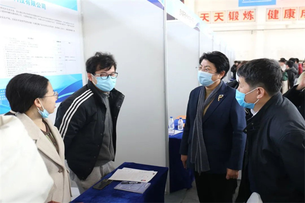 校党委书记杨玉新、校长杨华民、校党委副书记刘瑛来到双选会现场,详细了解吉林省、长春市引才政策,企业招聘需求和选才标准,并与现场毕业生亲切交谈,询问学生求职情况。