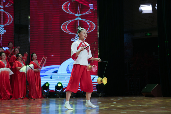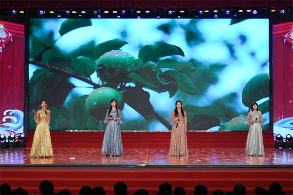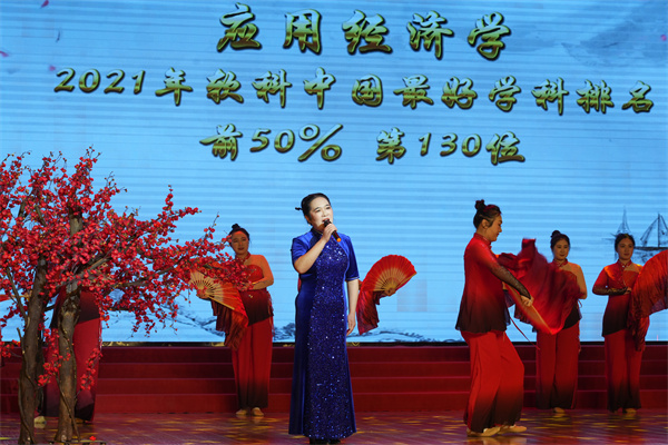 师生带来的精彩文艺表演点燃了现场气氛。小合唱《万疆》以其悠扬的旋律和深情的演唱,诠释了青年学子对祖国深深的爱恋;经济管理学院的歌伴舞《红梅赞》(京剧版)将京剧元素与现代舞蹈完美融合,带给观众一种全新的感受;计算机科学技术学院的舞蹈《心光·援梦》,展现了青年学生用青春和知识点亮偏远地区孩子梦想的感人故事;法学院的舞蹈《时代征程》,展现了建设者们在祖国宏伟蓝图上挥洒汗水的壮丽画卷。配乐诗朗诵《我追随的光,是五角星的光》、相声《外语专家》、经典歌曲联唱等展现了教师们课堂之外的别样风采。