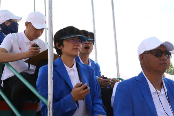 比赛中,杨玉新一行走下主席台,来到观众席,向在场师生问好,肯定了他们为校运会做出的努力,高度赞扬了各学院的入场表演。
