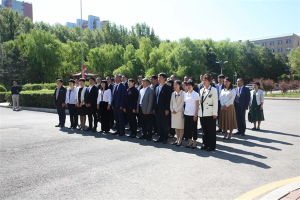 当天早上,朝阳区政协主席邴晓君、人大副主任范云波、副区长孙娜,我校党委副书记刘瑛一起来到东校区王大珩院士铜像前敬献鲜花,走进全国首批科学家精神教育基地——“王大珩展览馆”学习王大珩院士“尽瘁报国、博大精专、求实创新、虚怀若谷”的科学精神。