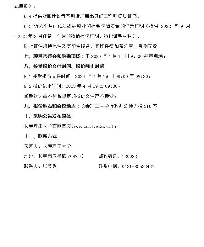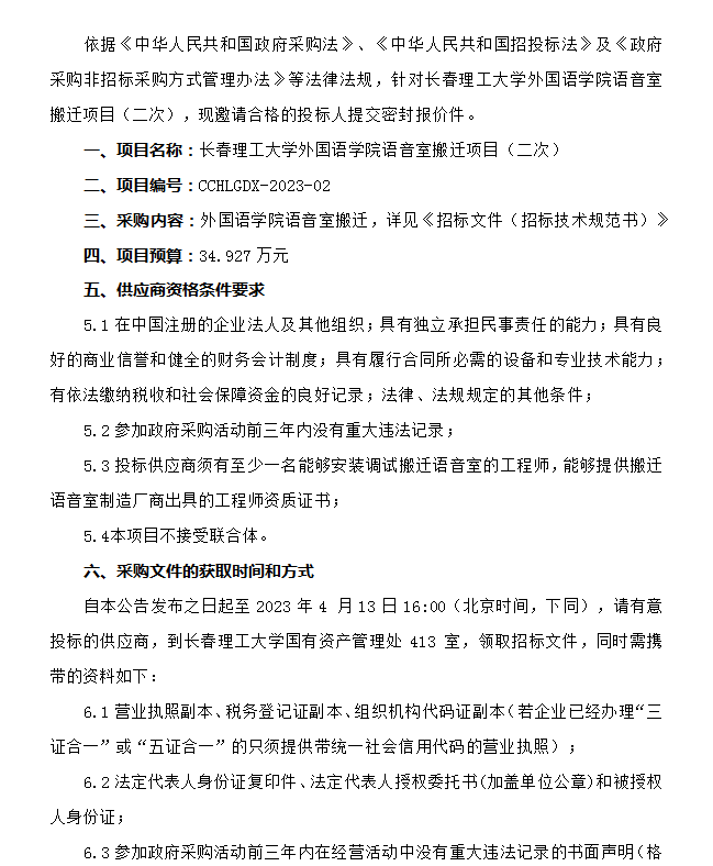 长春理工大学外国语学院语音室搬迁项目(二次)竞争性谈判公告