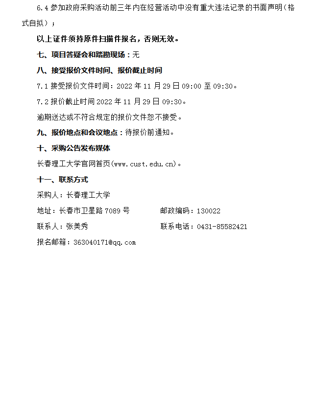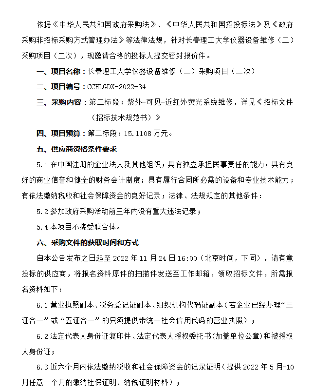 长春理工大学仪器设备维修(二)采购项目(二次)竞争性谈判公告