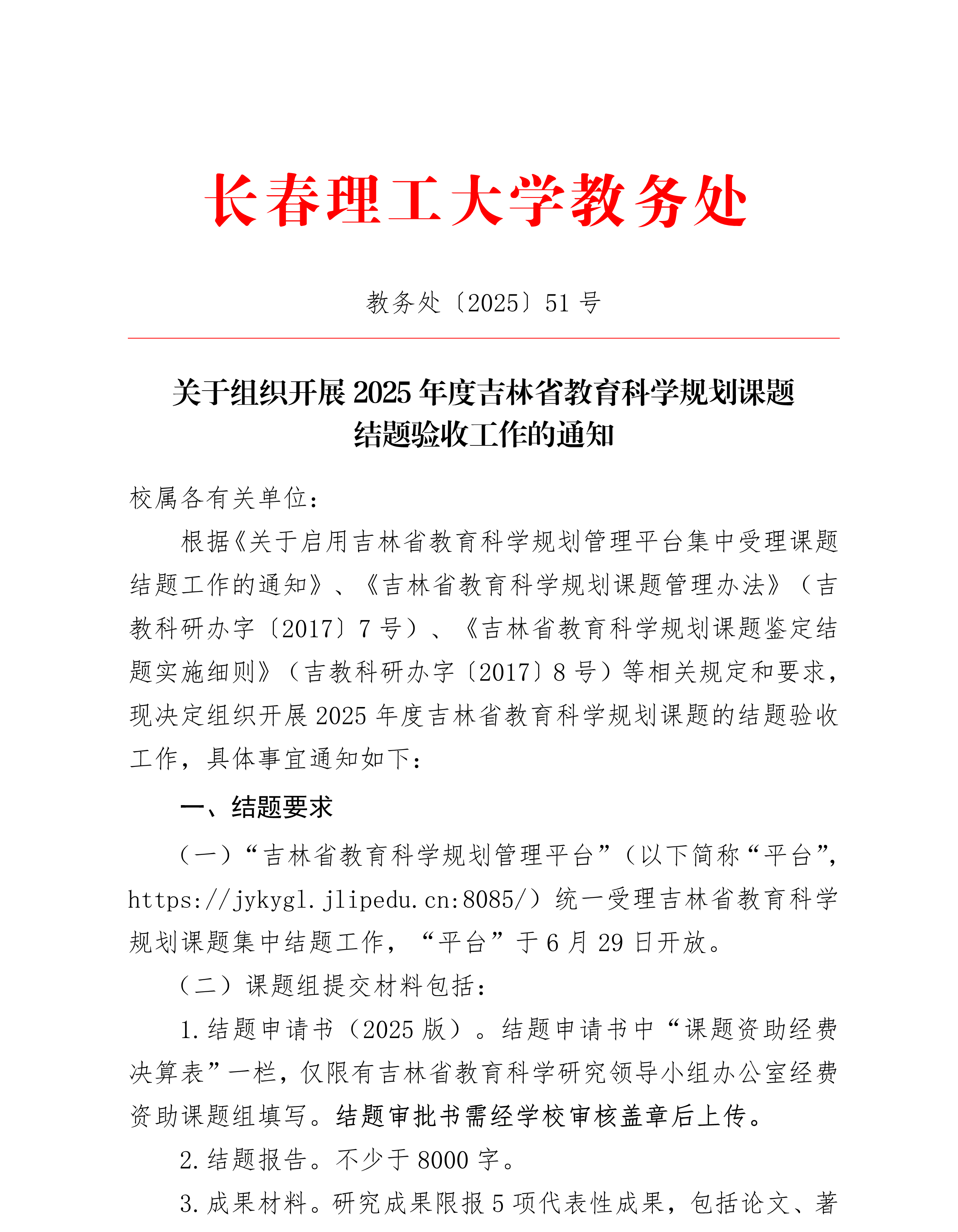 关于组织开展2025年度吉林省教育科学规划课题结题验收工作的通知
