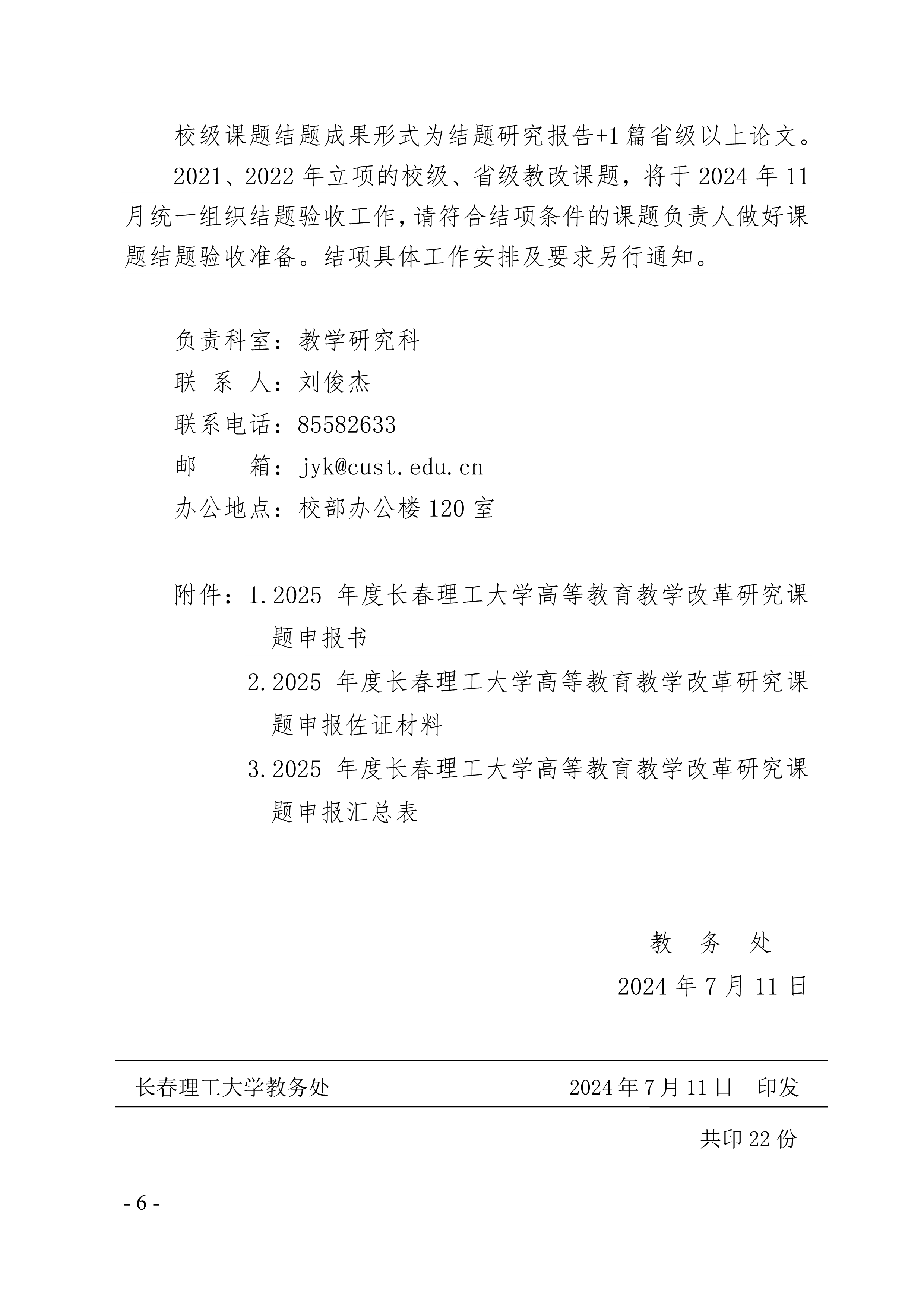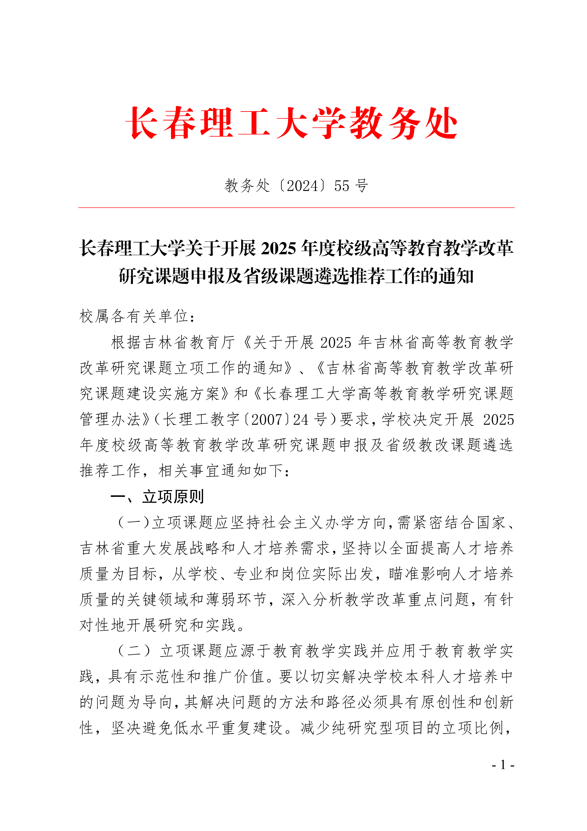 长春理工大学关于开展2025年度校级高等教育教学改革研究课题申报及省级课题遴选推荐工作的通知