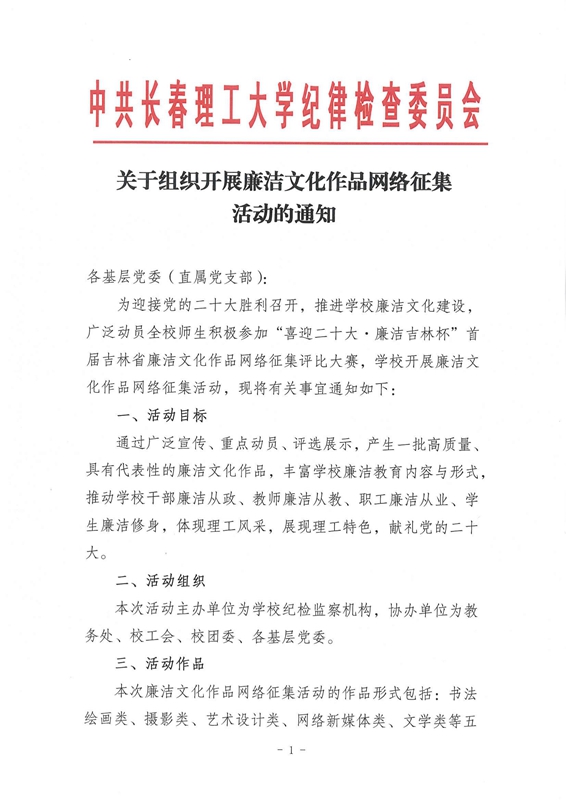 关于组织开展廉洁文化作品网络征集评比大赛的通知