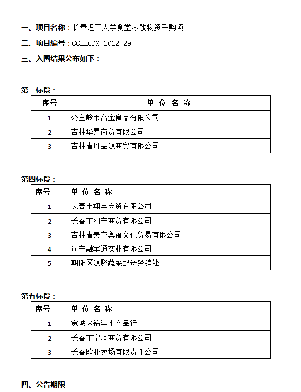 长春理工大学食堂零散物资采购项目入围结果公告