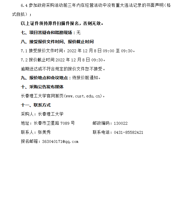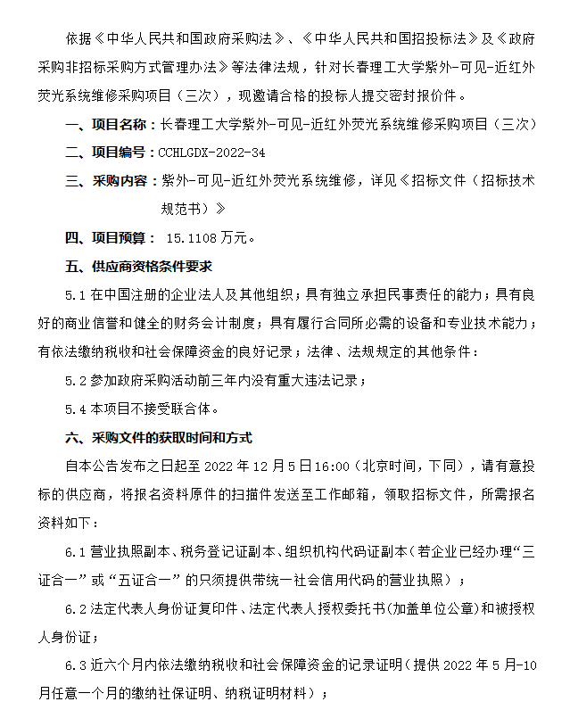 长春理工大学紫外-可见-近红外荧光系统维修采购项目(三次)竞争性谈判公告