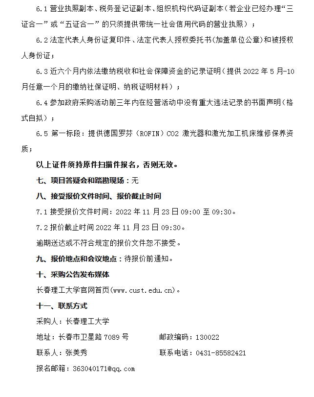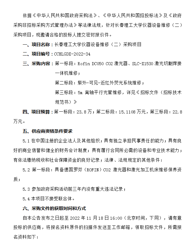 长春理工大学仪器设备维修(二)采购项目竞争性谈判公告